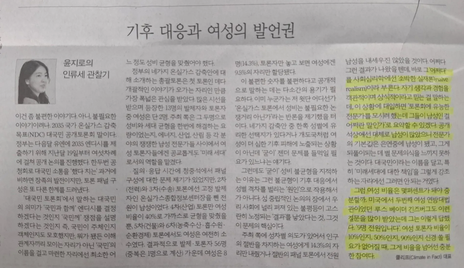 요즘 정부가 열심히 판을 깔고 있는 ‘2035 NDC (소위) 대국민 토론회’에서 Unpopular opinion을 하나 꼽자면, 단연 ‘젠더 관점’ ‘여성의 발언권’이 아닐까 싶다.
